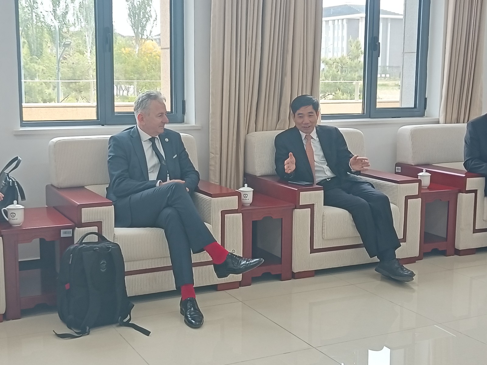 我校校长徐安龙会见来访代表团,匈牙利塞梅尔维斯大学校长高级顾问Dr. Ivady, Vilmos,国际合作交流处负责人、护理学专家Dr.Pop, Marce介绍了塞梅尔维斯大学在教育、医疗发展的相关情况。